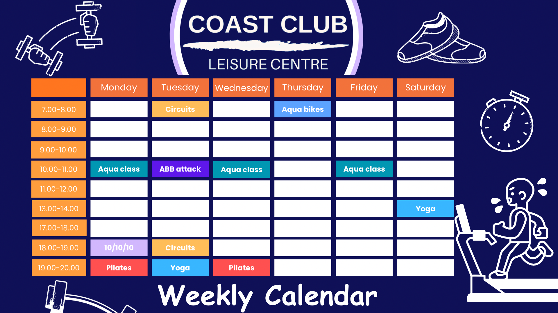The Coast Club Leisure Centre is now offering a full range of fitness classes. Contact reception today for more information.